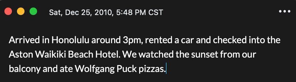 A few months into my journaling, Day One came along and became its home (I backfilled the entries from those few months).
